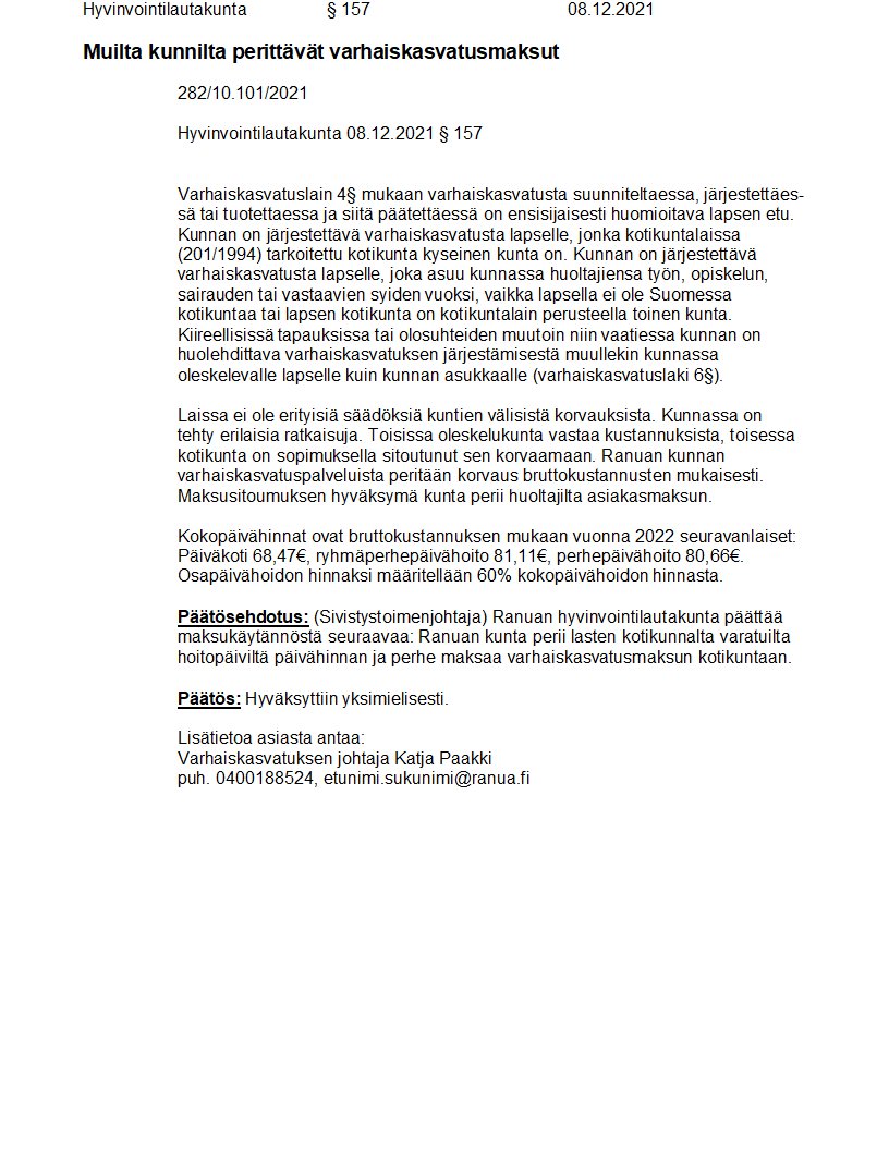 Pöytäkirja 08.12.2021/Pykälä 157