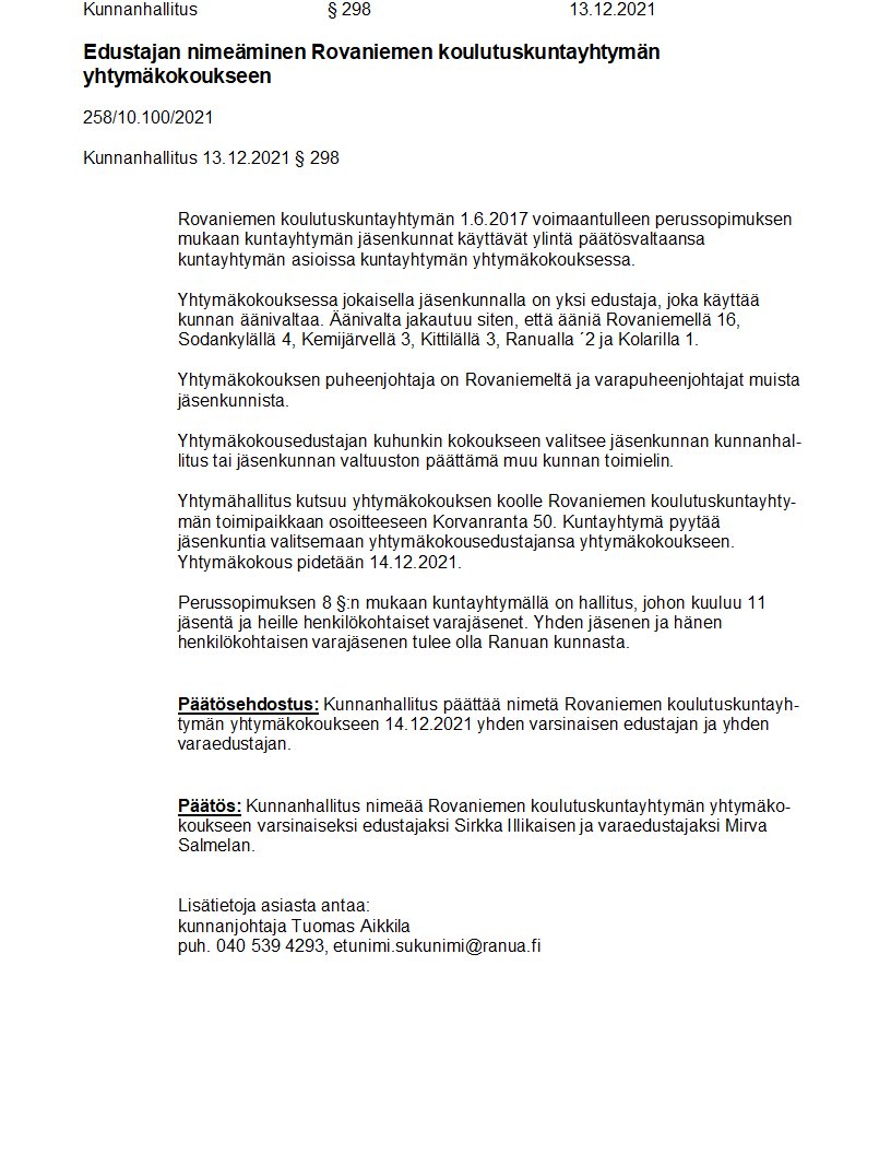 Pöytäkirja 13.12.2021/Pykälä 298