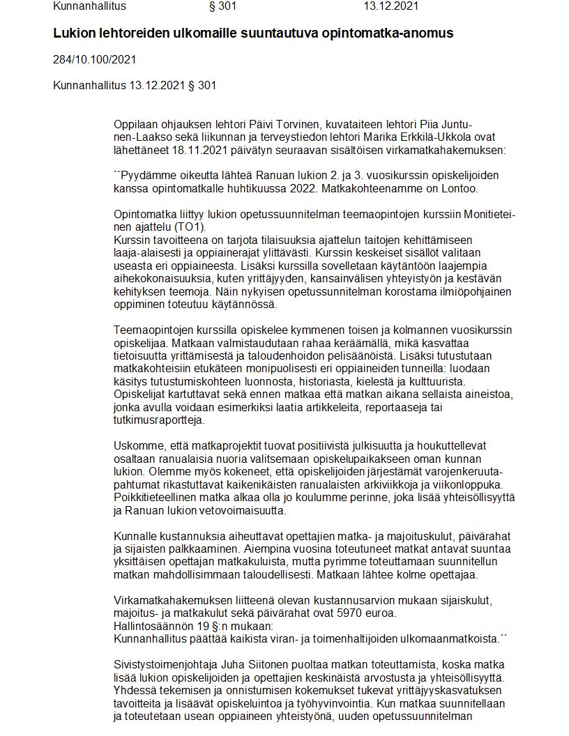 Pöytäkirja 13.12.2021/Pykälä 301