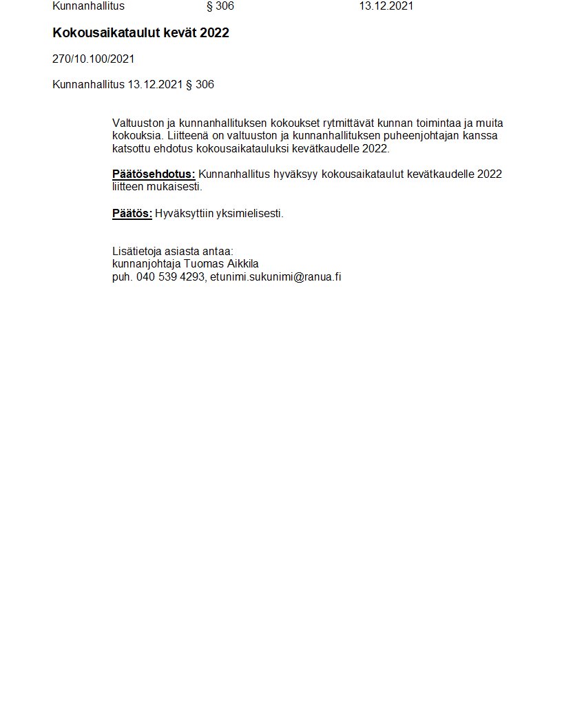 Pöytäkirja 13.12.2021/Pykälä 306