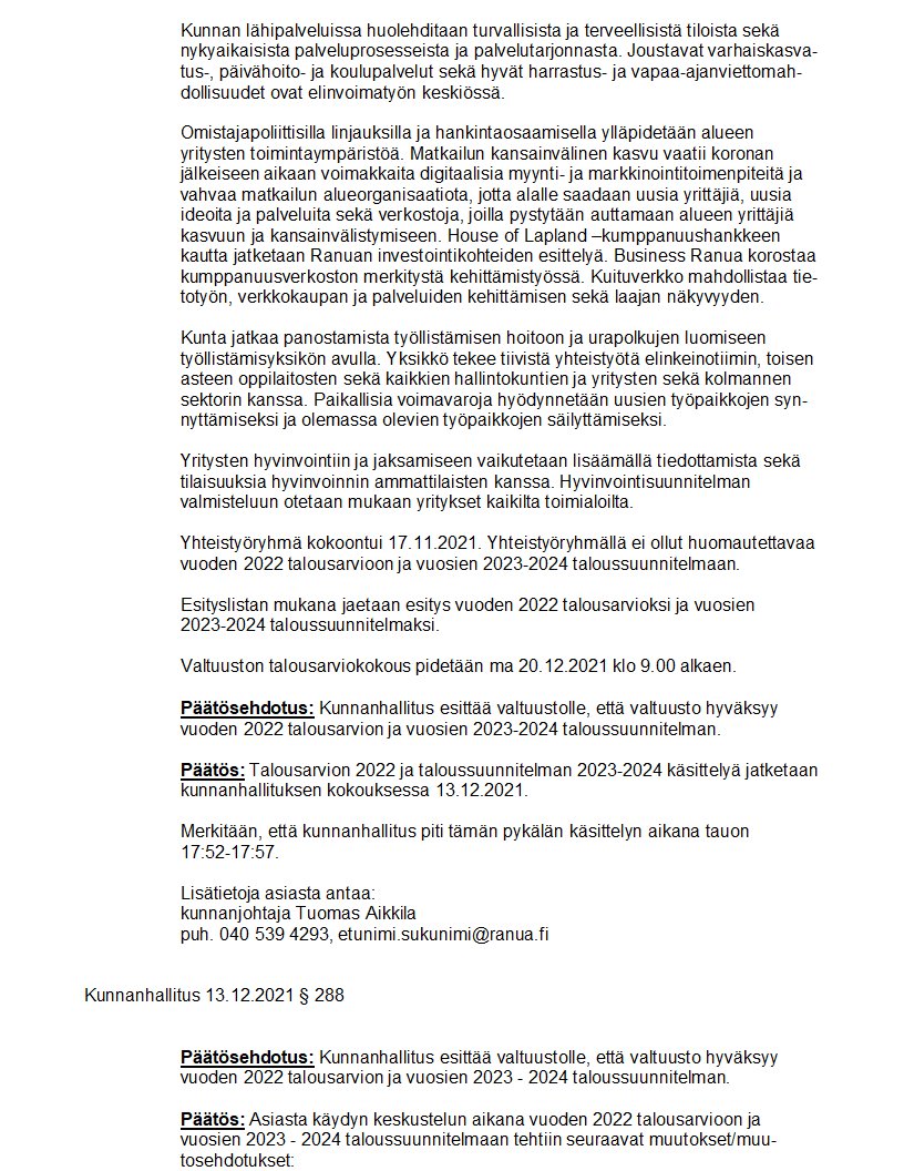 Pöytäkirja 13.12.2021/Pykälä 288
