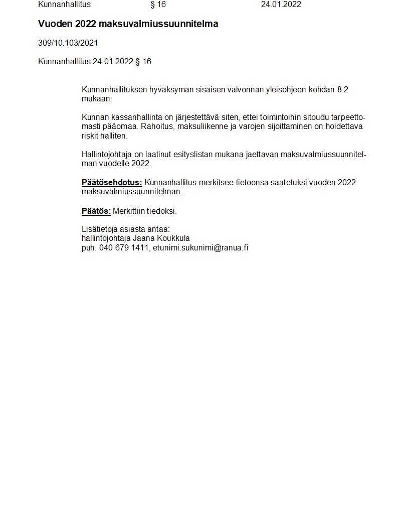 Pöytäkirja 24.01.2022/Pykälä 16
