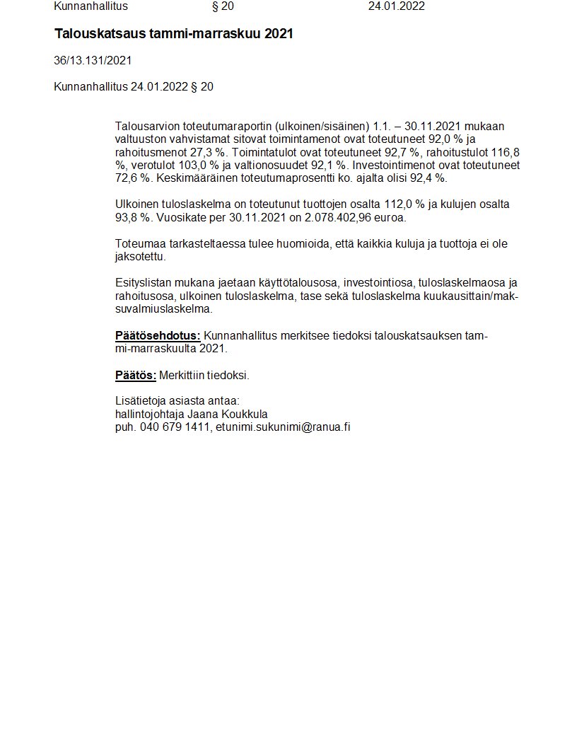 Pöytäkirja 24.01.2022/Pykälä 20