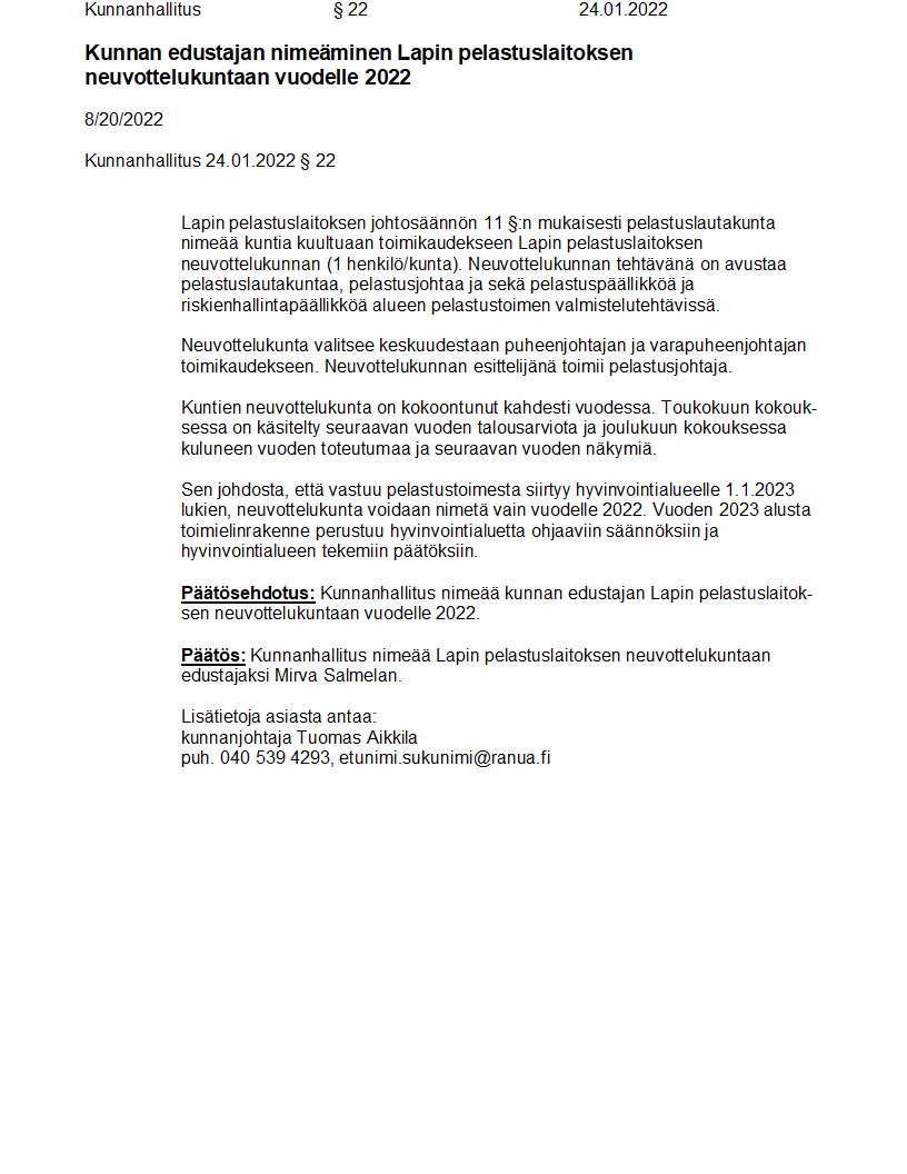 Pöytäkirja 24.01.2022/Pykälä 22
