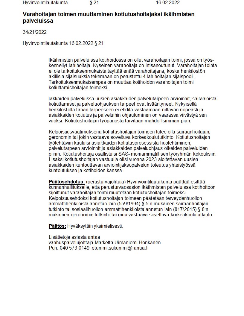 Pöytäkirja 16.02.2022/Pykälä 21
