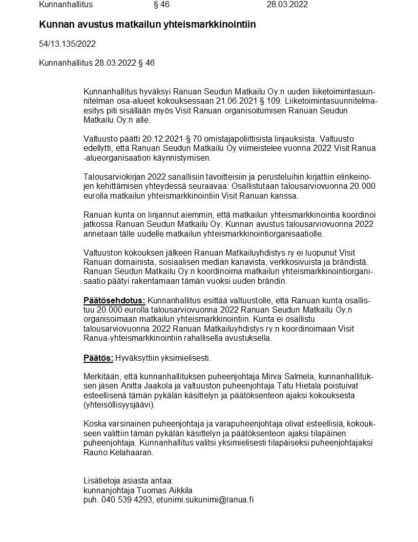 Pöytäkirja 28.03.2022/Pykälä 46