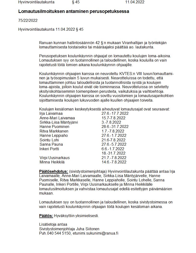Pöytäkirja 11.04.2022/Pykälä 45