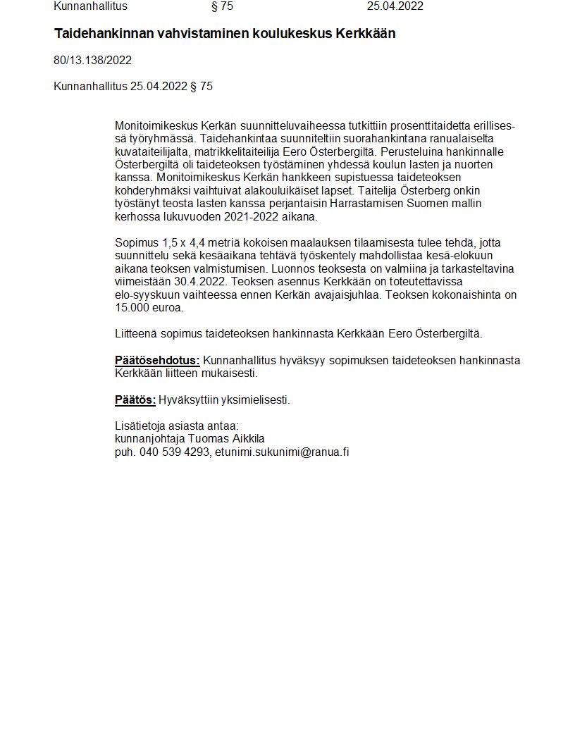 Pöytäkirja 25.04.2022/Pykälä 75