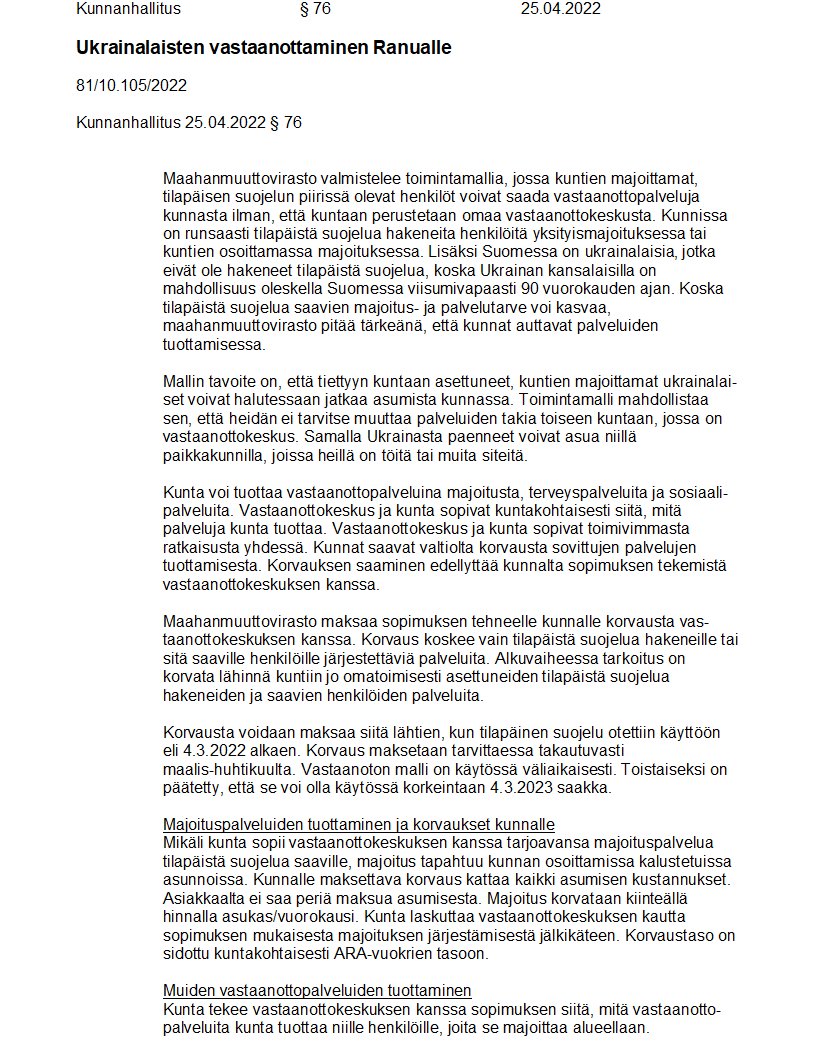 Pöytäkirja 25.04.2022/Pykälä 76