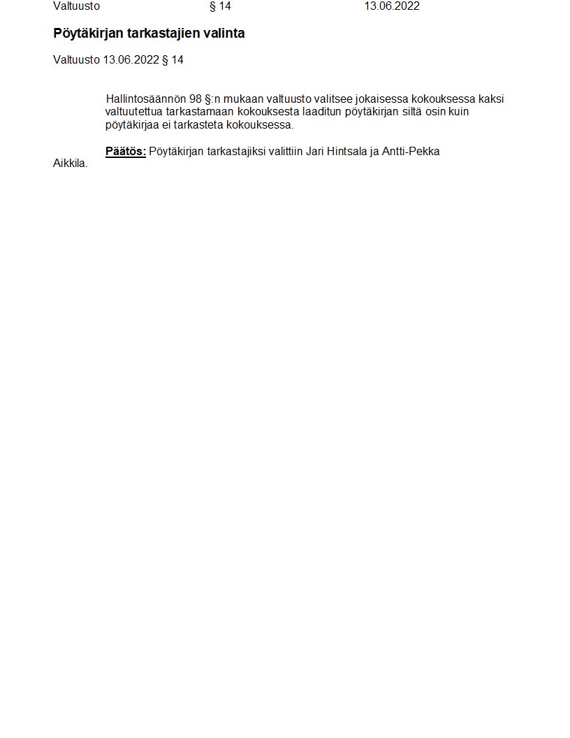 Pöytäkirja 13.06.2022/Pykälä 14