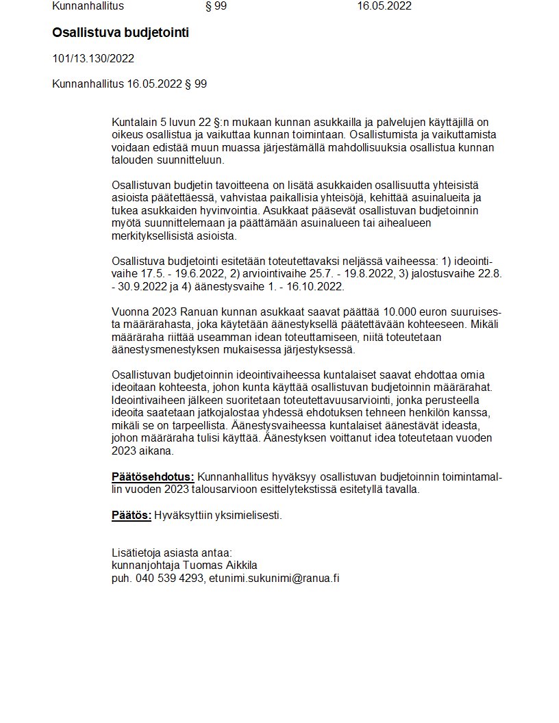 Pöytäkirja 16.05.2022/Pykälä 99
