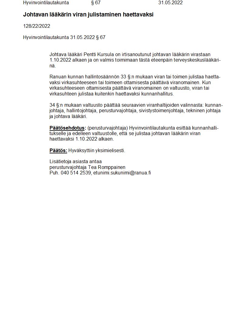 Pöytäkirja 31.05.2022/Pykälä 67