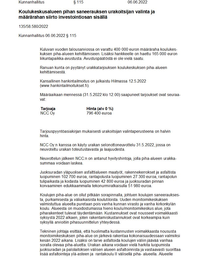 Pöytäkirja 06.06.2022/Pykälä 115