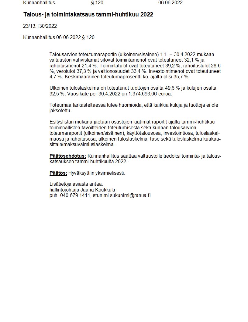 Pöytäkirja 06.06.2022/Pykälä 120