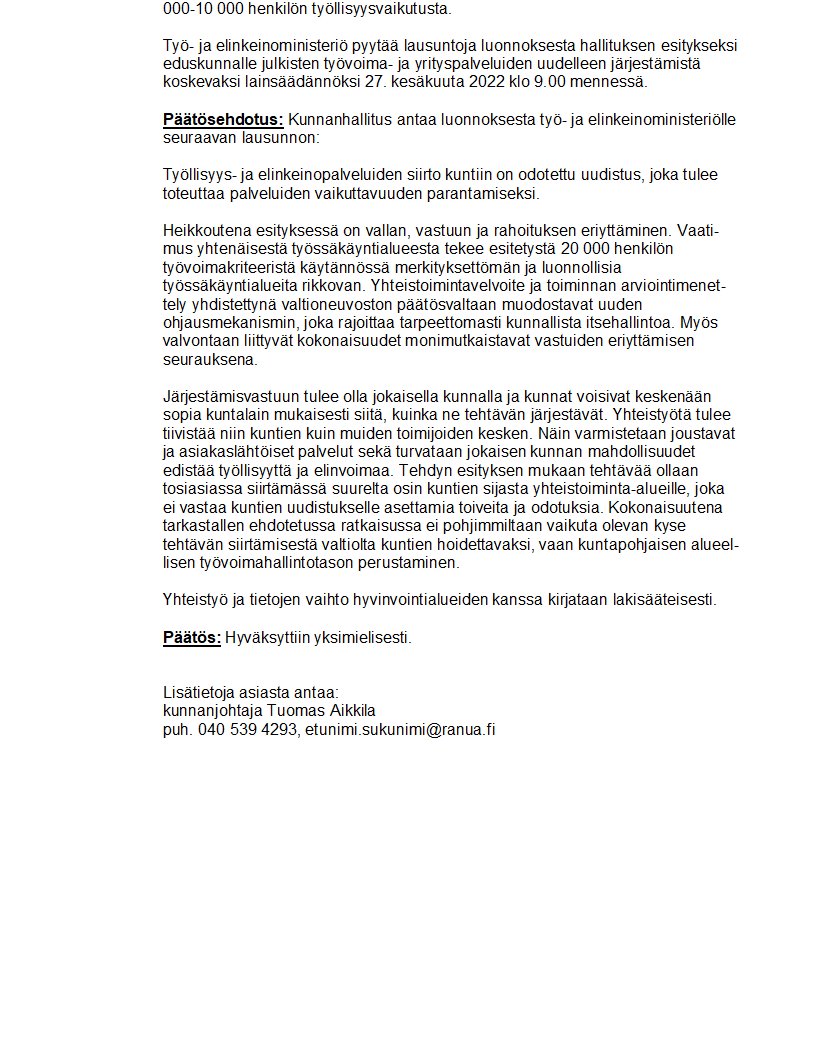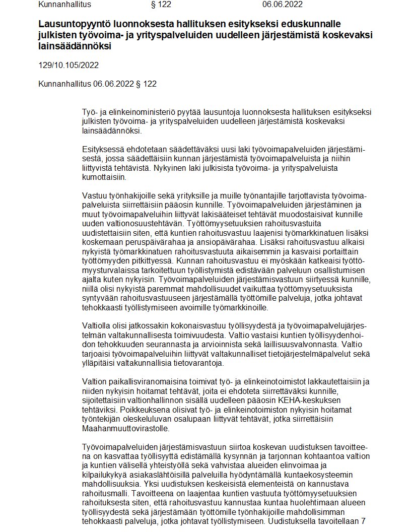 Pöytäkirja 06.06.2022/Pykälä 122