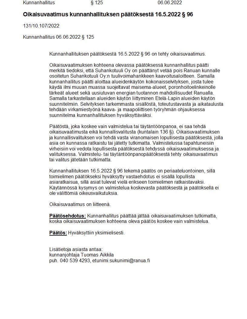 Pöytäkirja 06.06.2022/Pykälä 125