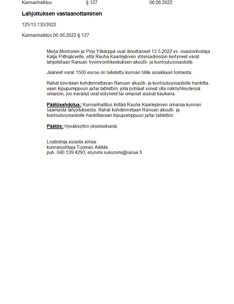 Pöytäkirja 06.06.2022/Pykälä 127