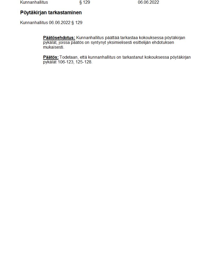 Pöytäkirja 06.06.2022/Pykälä 129