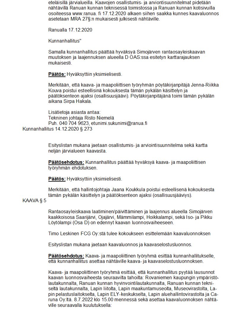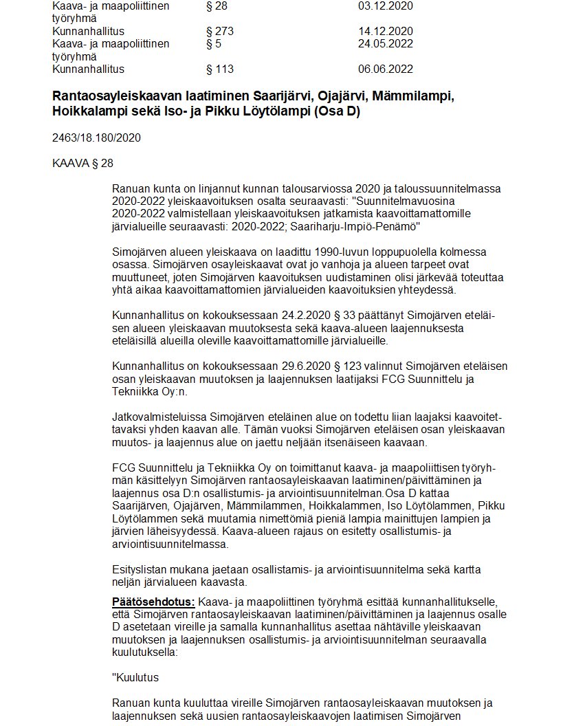 | Simojärven yleiskaavan kaava-alueen D luonnosvaiheen aineisto kevät 2022 |